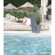 Витончена фома горщика підходить для високих або кущових рослин. Матеріал горщика стійкий до ультрафіолету, дощу та перепадів температур.