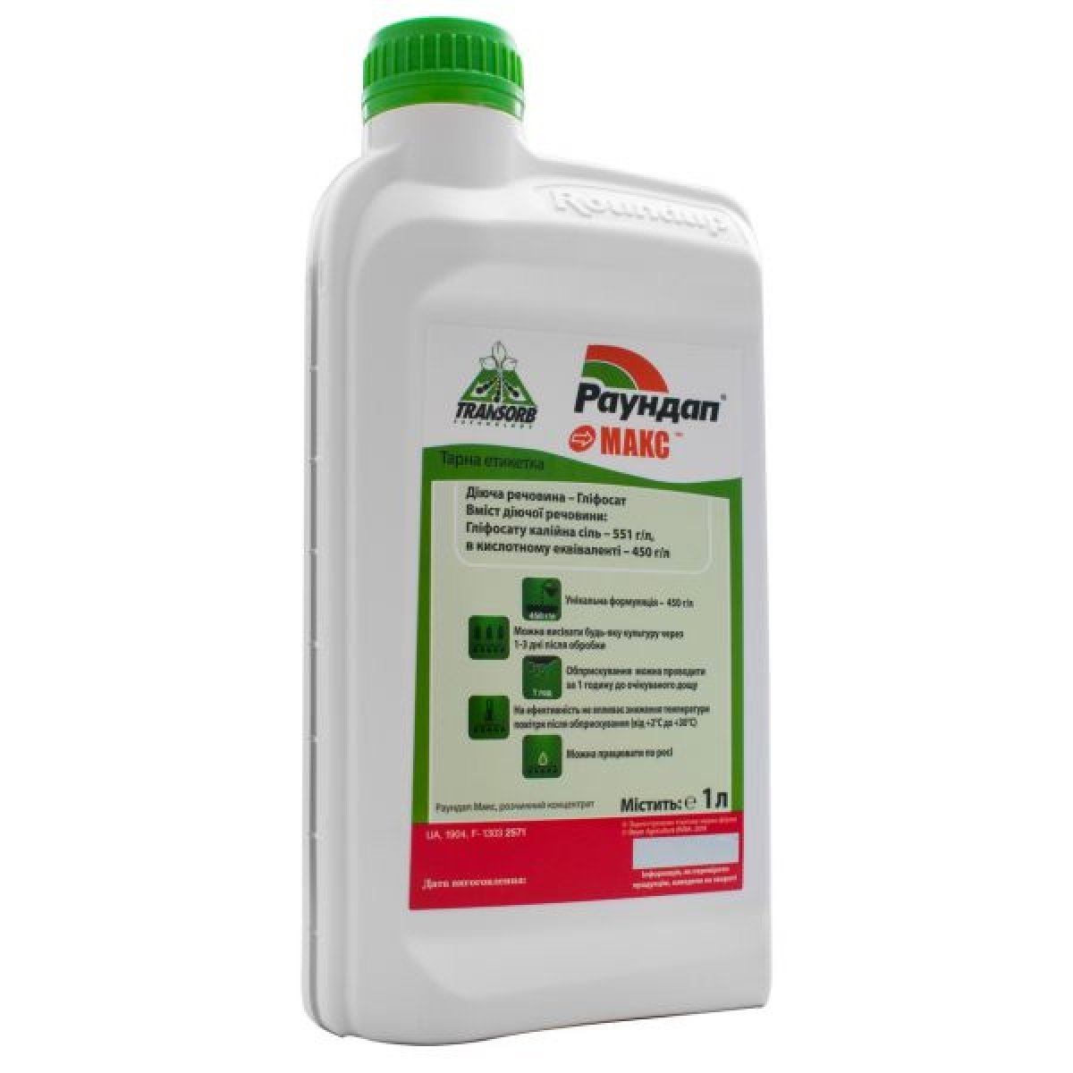 - Раундап Макс – системний гербіцид суцільної дії із запатентованою Трансорб Технологією, призначений проти однодольних та дводольних бур’янів, що вегетують на етапі до посіву культури;