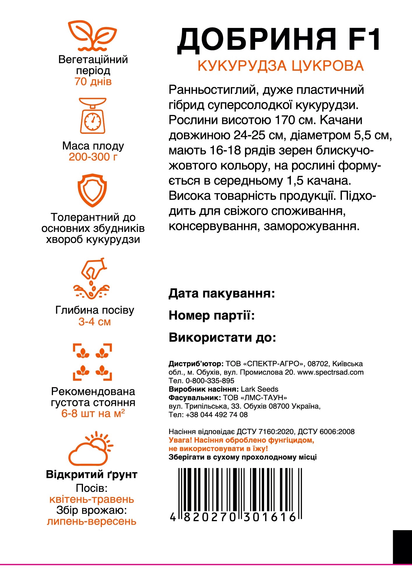 Вегетаційний період 70 днів.