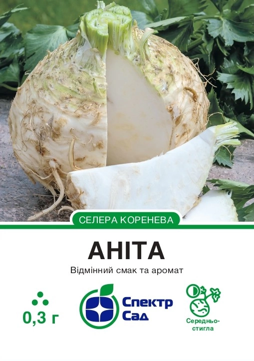 Селера Аніта — високоврожайний сорт кореневої селери з рівними, щільними коренеплодами та ніжною ароматною м’якоттю. Підходить для вирощування у відкритому ґрунті, добре зберігається та має універсальне кулінарне використання.