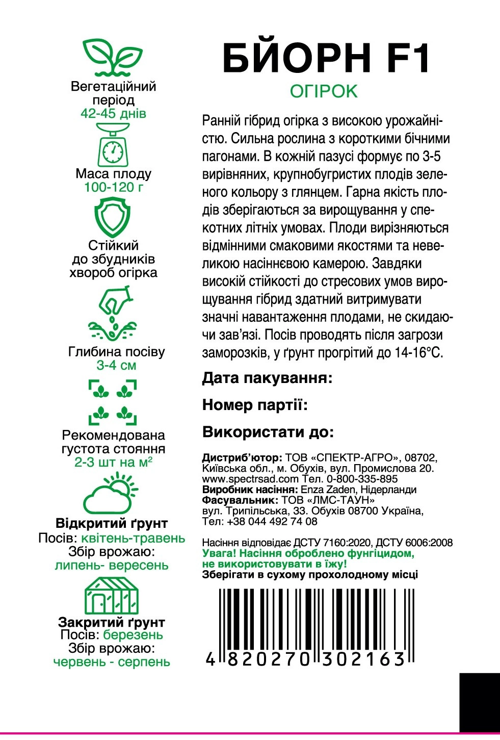 Будьте першим, хто залишив відгук на “Огірок Бйорн F1, 10 шт”