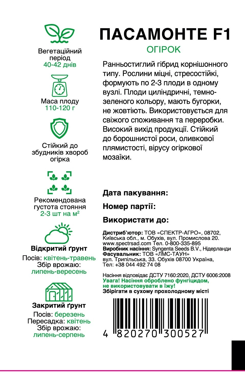 Пасамонте F1 – це ранній гібрид партенокарпічного огірка корнішонного типу, у якого плодоношення настає на сорокові дні.