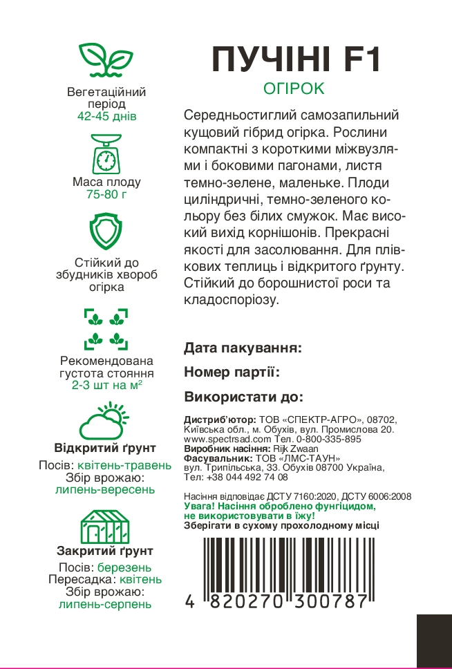 Пучіні F1 – середньостиглий самозапильний кущовий гібрид огірка.