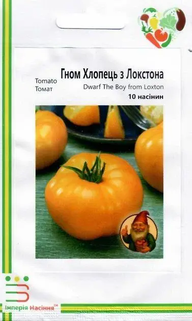 Томат гном Хлопець із Локстона – це детермінантний (штамбовий) до 80см, середньостиглий сорт. Плоди яскраві оранжево-червоні, соковиті, вагою 100-300г, що мають збалансований солодкуватий смак з кислинкою і добре підходять для салатів та свіжого споживання.
