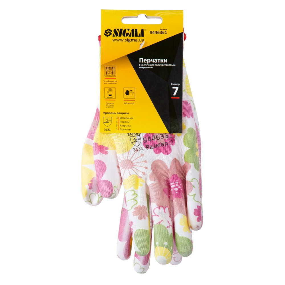 Рукавички з ПУ покриттям білі, манжет, SIGMA 9446361