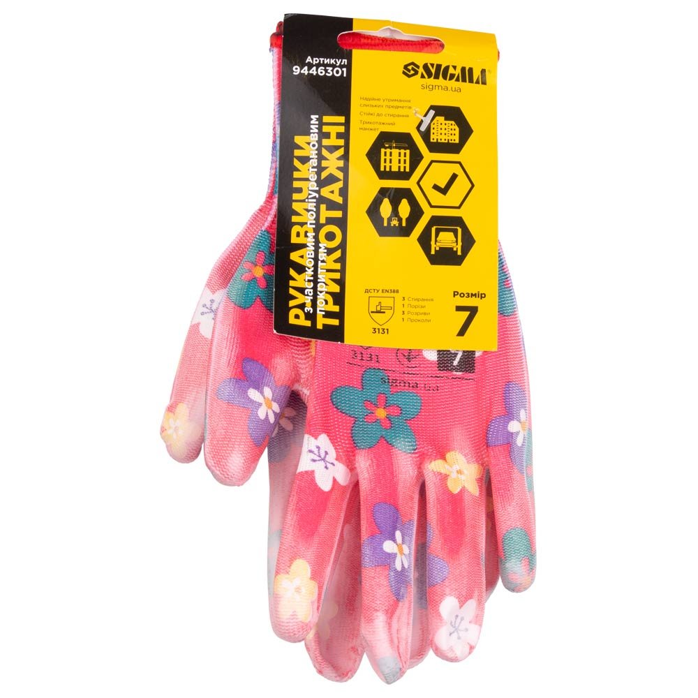 Магазин > Товари для садівництва > Рукавички з ПУ покриттям червоні, манжет, SIGMA 9446301