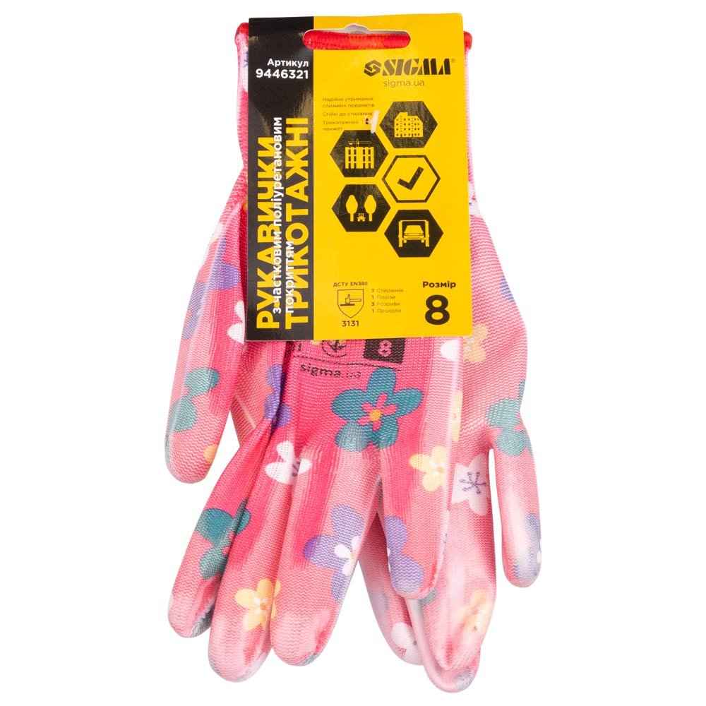 Магазин > Товари для садівництва > Рукавички з ПУ покриттям червоні, манжет, SIGMA 9446321